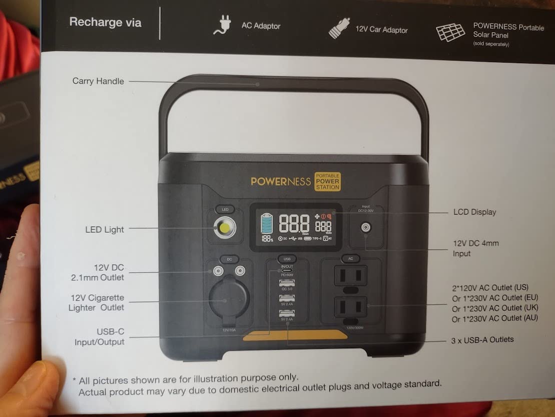 This portable charging station is too cool! To start, it comes partially charged. It can finish charging with either a standard plug, or if you are camping, it has a lighter plug (no idea what they’re called). There is also a plug to attach a solar panel, which is sold separately. This size power bank isn’t going to keep your fridge going (for long) but it is perfect for the various must have devices during a power outage or camping trip! There are several types of charging ports, so you should be set to charge whatever you need! Definitely recommend!