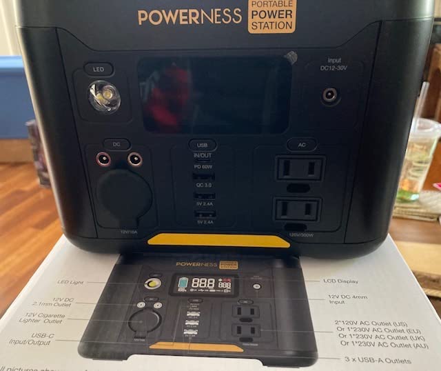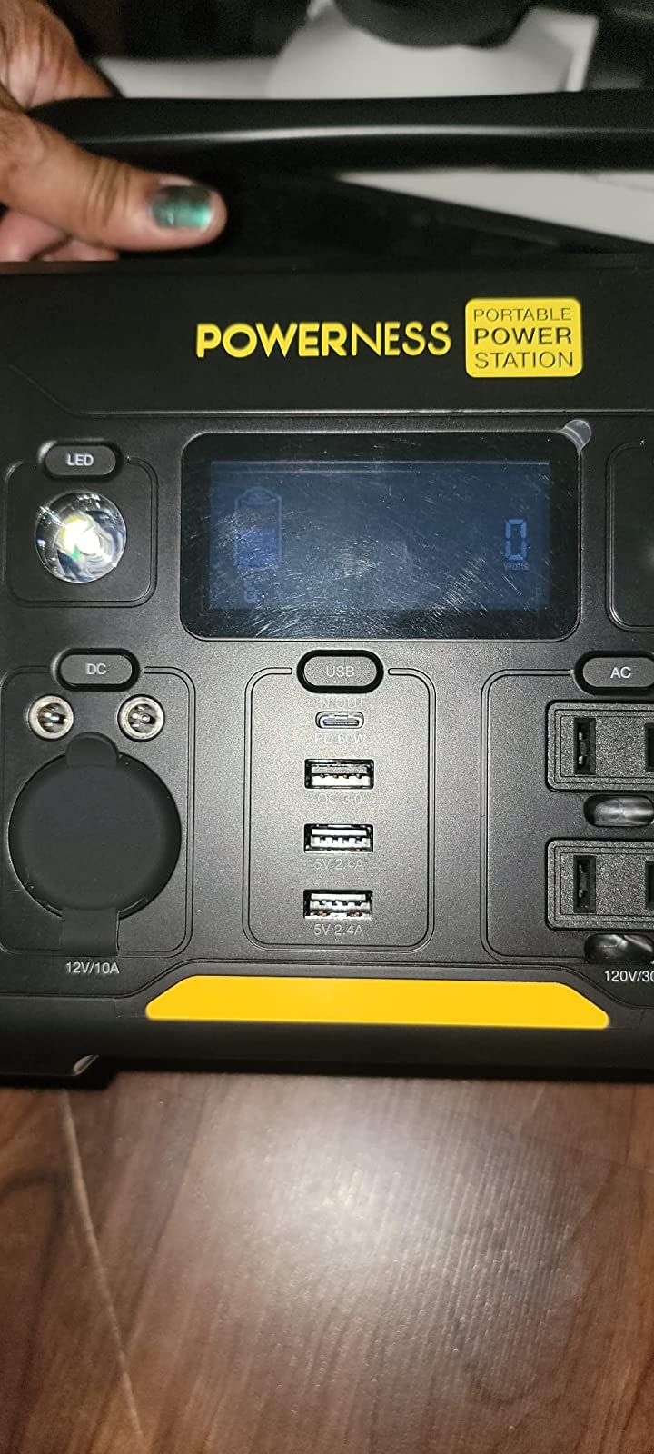 Works great to power my Bodega cooler, phone, tablet and laptop. It can wirelesly charge my phone on top by pressing the USB button. It is durable and easy to carry. It has a watt display as well - I love that feature to visually see how much wattage is used for specific devices. It is a great value for the amount of power 300w/120v, quality, total capacity wh of 296, functionality and price.